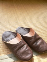 ご存知の方も多いかな?バブーシュっていう室内用のはきものです。羊の皮でできているもので、モロッコ産。スリッパを履くと、なんでか転びそうになります。でもこれは階段ののぼり降りも楽チン。素足で履いても寒くなく、久しぶりの「優れもの」です。