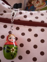 特産の海の幸や、スイーツを試食。特産の物が並ぶ中、アトピーなら一度な耳にする「豊富温泉」の体験コーナーがあったり・・。とにかくいい人ばっかり!普通は一度だけの試食を「おいしいべぇ~もっと食べていきなさぁ~い」と、何度も。笑。子ども達は大喜びで、お土産にお塩までいただき。大満足で帰ってきました。そこにサハリンコーナーもあり、ロシアの民族衣装を着たきれいな日本語を話すロシアの女性。マトリョーシカを買いたいと思っていたけど、グッとくる顔に出会えず、彼女が選んでくれたキーホルダーを買ってきました。水玉バックに似合うでしょ♪