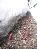 息吹はじめた我が家の庭。 まだ雪も残ってはいるものの・・昨年秋に植えたチューリップが雪の下でしっかり芽を出しはじめてました。あぁ~うれしい。初めて球根を植えて、立派なな芽に泣きそうに感動!花が咲いた時には失神するのではないでしょうか?笑。今年はどんな庭にしようか?ワクワクが止まりません♪