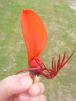 とっても甘いんだろうなぁ~。落ちてた花ですが、小さな蟻だらけ。振ってみるとどんどん出てくる蟻ちゃん。それにしても予想を反する花の形。もっと可愛い5枚ぐらいの花びらで・・なんて思っていましたが、こんなお花でした。