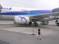 プリンス君は?「バス!」。飛行機に乗るために乗る大人には面倒なあの空港内バスが最高に楽しかったプリンス君。3歳以下のお子様連れは、ありがたく優先搭乗ができ、こんな写真も撮れました。