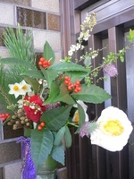 写真は、今年の玄関のお花。つばきが入ってました。飾って2週間。つばきのお花は落ちてしまいましたが、まだまだ楽しめます。来年のお花は、自分で生けてみたいなぁ~。