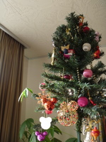 イルミネーションの点灯のニュースを聞き始めると、我が家でもツリーがぶら下げられます。今年のツリーのテーマは、「MIX」。いままで、集めていたオーナメント全部飾ってみました。これまた賑やかでいい感じ。