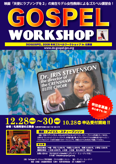 年末になりますが、アイリス・スティーブンソンさんが札幌でワークショップを開催します。名前を聞いても誰かわかりませんが、天使にラブソングのウーピー役のモデルになった方です。憧れの人。